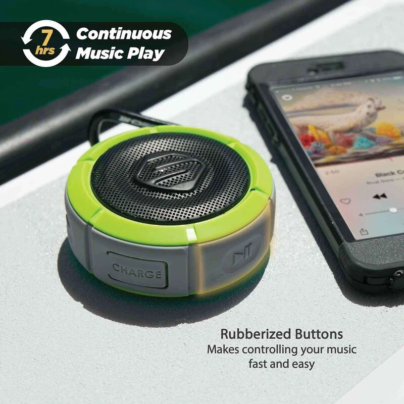 Take it anywhere: Perfect for the beach, the pool, the lake and more! And don’t worry about dropping it in the pool, lake or river, because it floats and stays face up so you won’t miss a song. That’s what it was made for!
